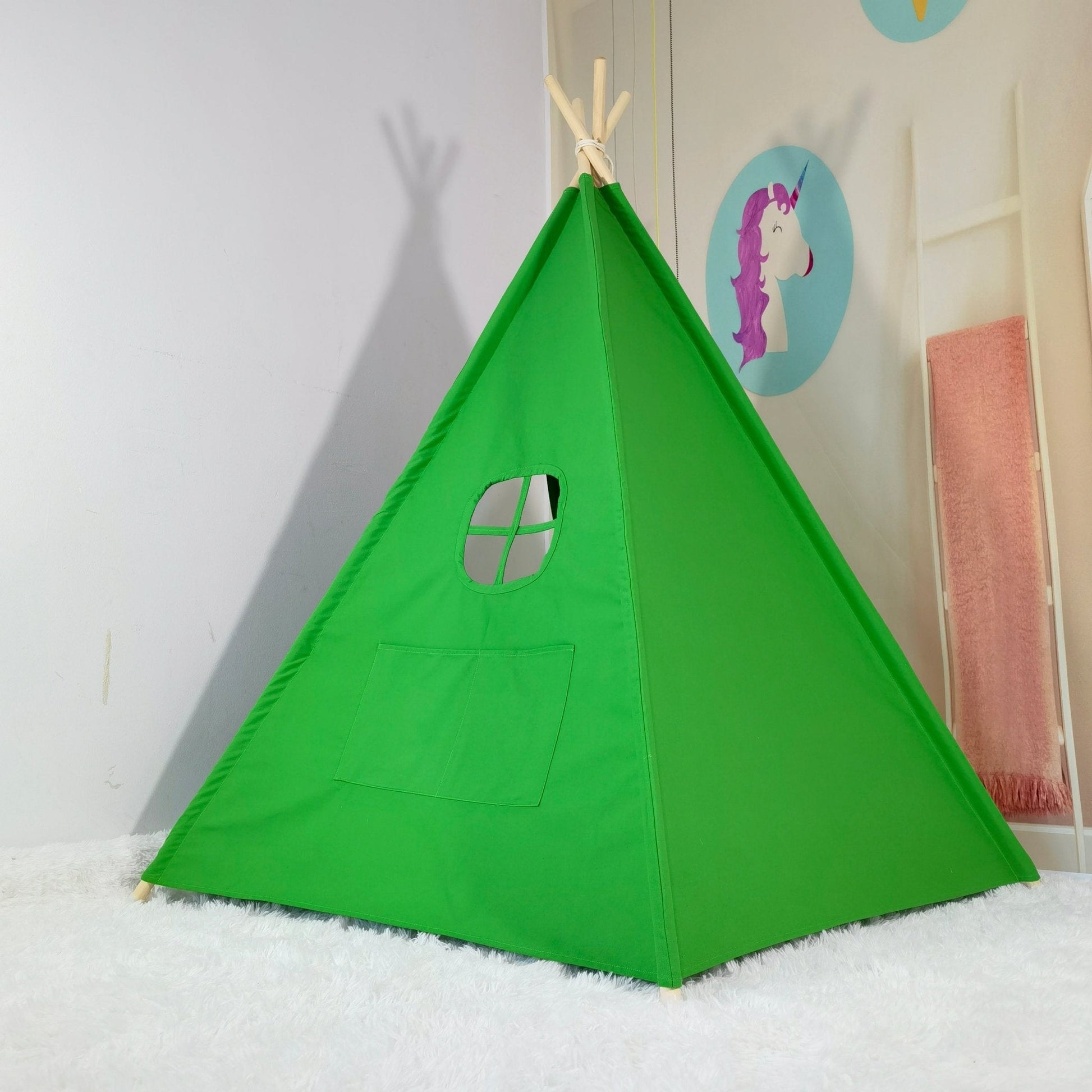 - The green teepee tent is hand-crafted with quality materials.
